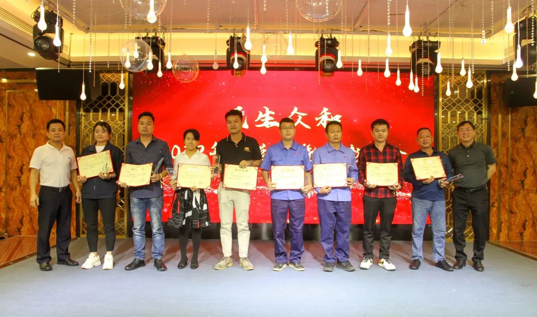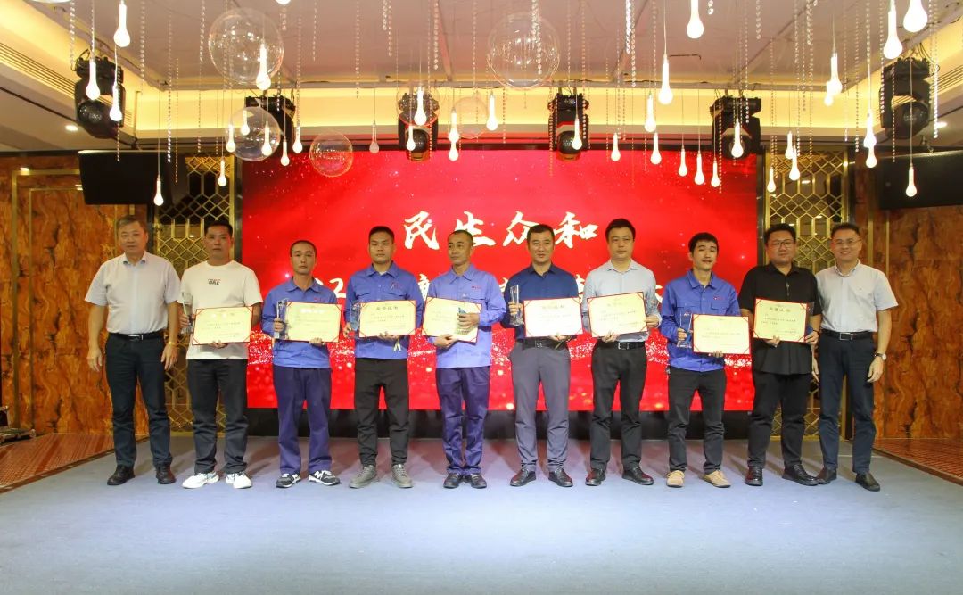 民生眾和集團(tuán)黨總支書記林少海與集團(tuán)工會(huì)主席毛建中為“崗位能手”頒獎(jiǎng)