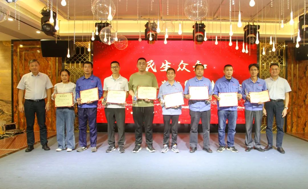 表彰儀式上,民生眾和集團(tuán)工會(huì)主席毛建中與集團(tuán)總裁助理?xiàng)罴t日宣讀集團(tuán)表彰及工程師聘任決定,集團(tuán)及各公司領(lǐng)導(dǎo)為獲獎(jiǎng)集體及員工頒獎(jiǎng),為通過集團(tuán)工程師評(píng)聘的員工頒發(fā)工程師聘任證書。