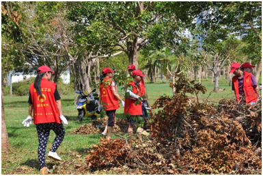 7月26日 公司藍(lán)焰義工隊(duì)在萬(wàn)綠園開(kāi)展清理垃圾志愿活動(dòng)。
