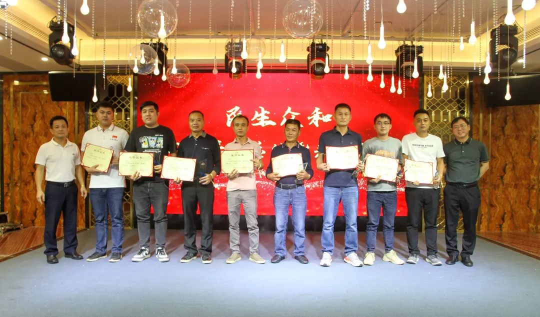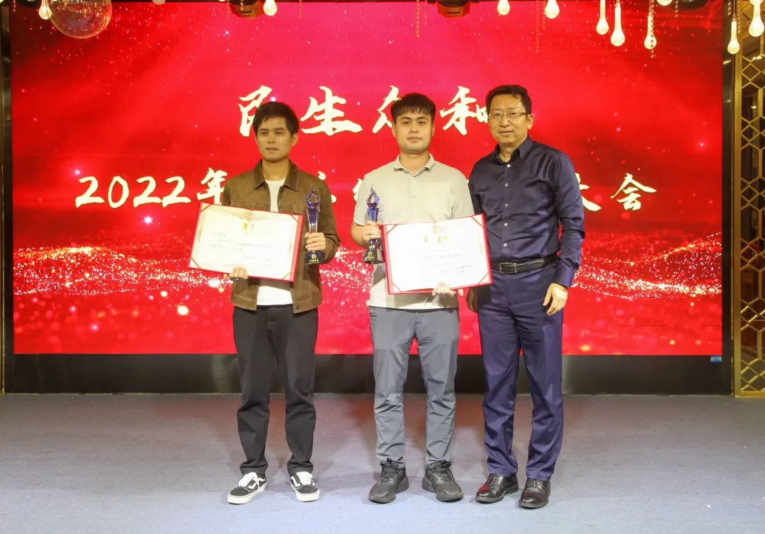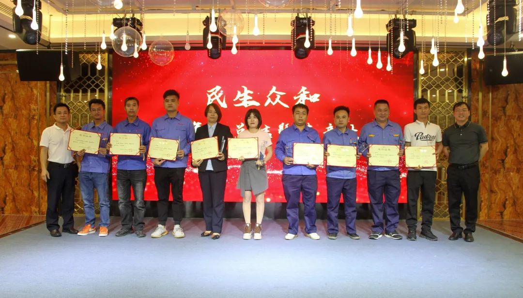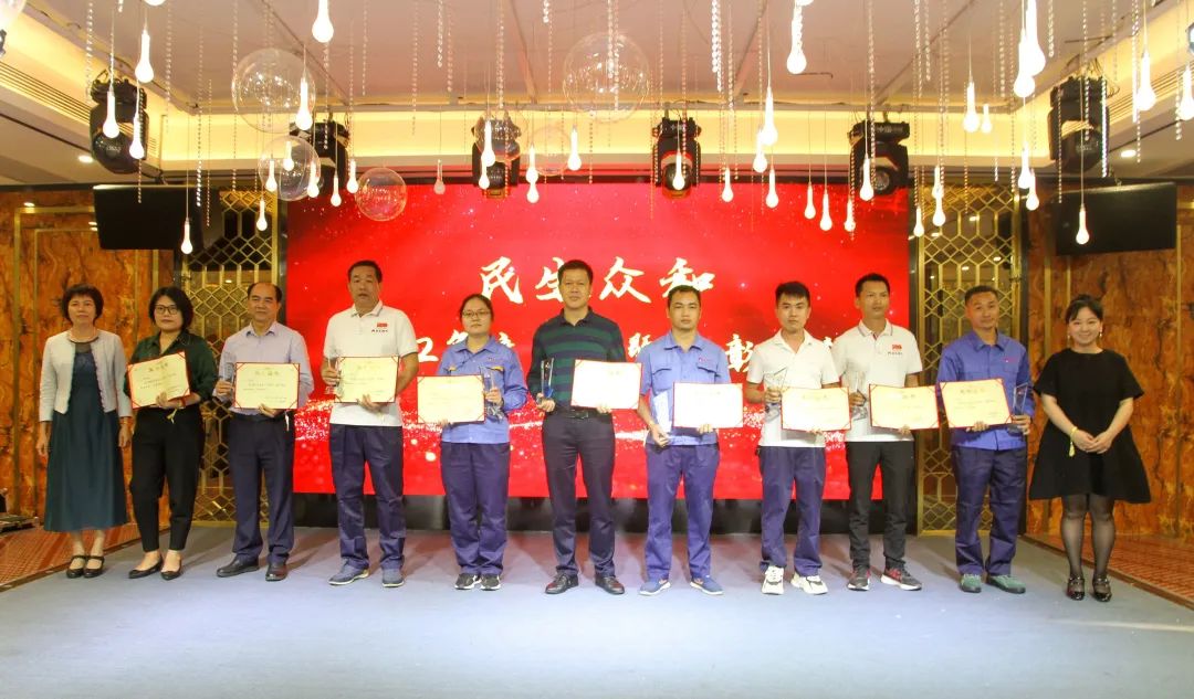 民生眾和集團(tuán)黨總支書記林少海與集團(tuán)工會(huì)主席毛建中為“崗位能手”頒獎(jiǎng)