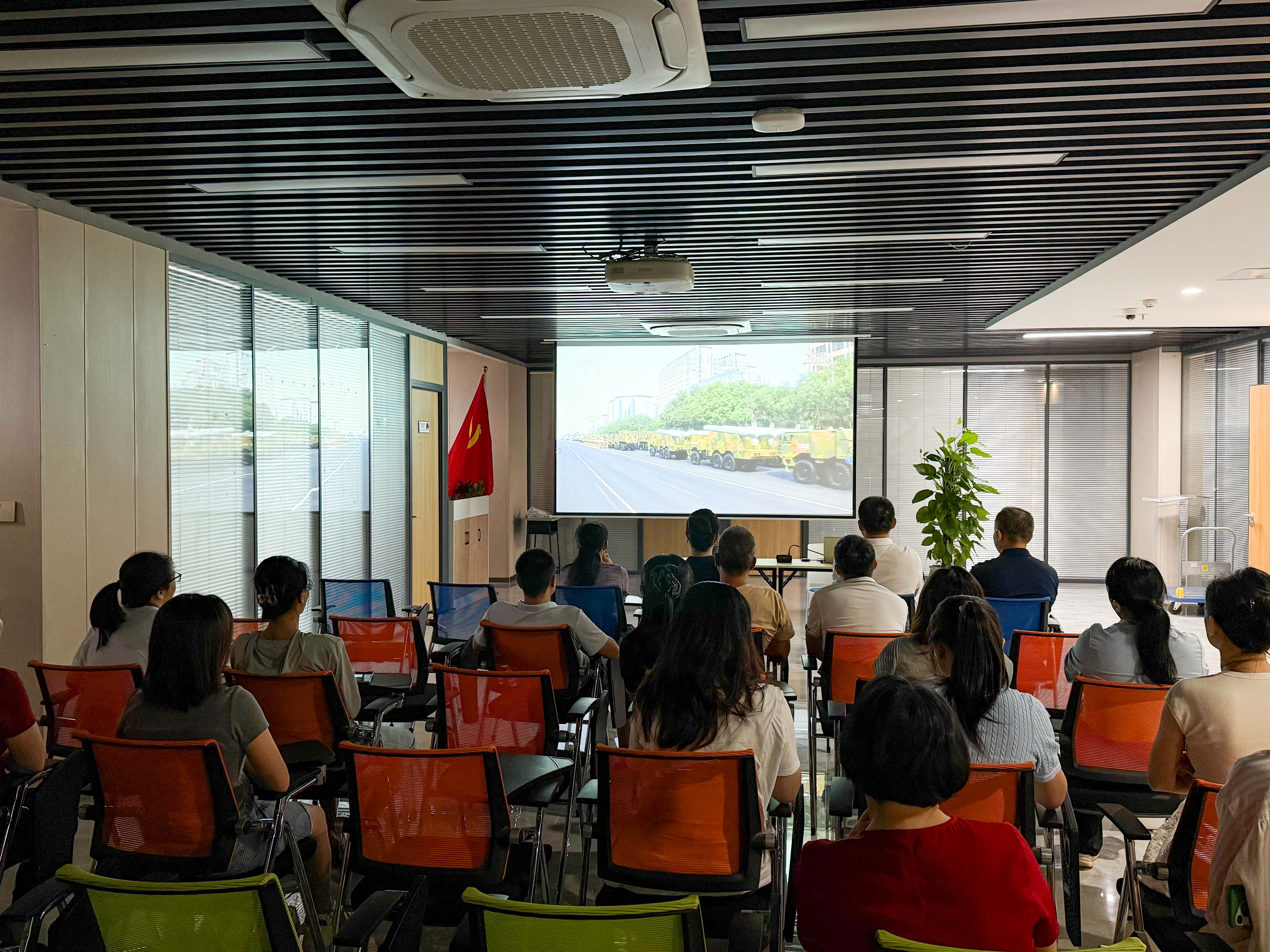 直播期間,大家認(rèn)真聆聽習(xí)近平總書記的重要講話,凝心觀看閱兵儀式的每一個(gè)精彩瞬間。空中護(hù)旗梯隊(duì)、徒步方隊(duì)、戰(zhàn)旗方隊(duì)、裝備方隊(duì)和空中梯隊(duì)等45個(gè)方(梯)隊(duì)依次通過天安門廣場(chǎng),氣勢(shì)恢宏的受閱方陣讓每一位員工心潮澎湃、熱血沸騰。大家直觀感受到了新時(shí)代人民軍隊(duì)的昂揚(yáng)風(fēng)貌與強(qiáng)大的國家實(shí)力,深深被這場(chǎng)國家盛典所震撼。